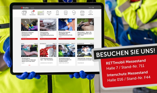 Haben wir Ihr Interesse geweckt? Dann besuchen Sie Smedex E-Learning an der RETTmobil 2022 in Fulda am Messestand 711 in der Halle 7.